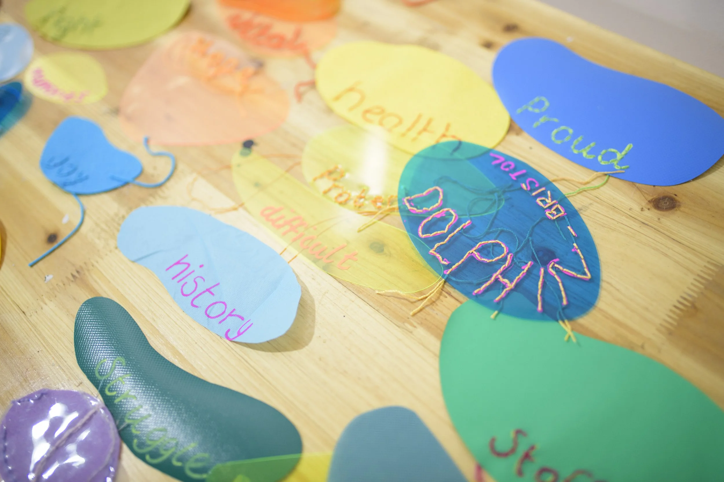 Over Weston Arts & Health Weekender 2023 we invited people to take part in drop-in creative workshops to share their thoughts, feelings, and memories about the NHS. I led these sessions in collaboration with University Hospitals Bristol and Weston NHS Foundation Trust (UHBW), and the University of Bristol.